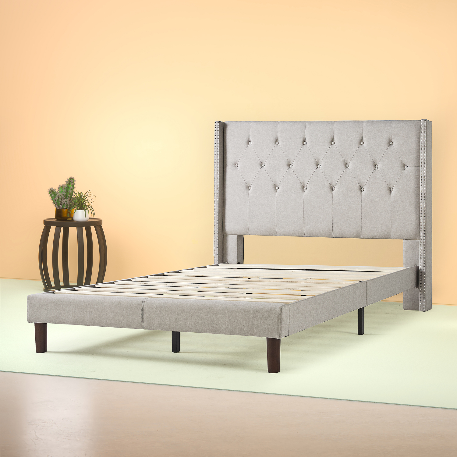 Wingback Platform Bed | Shop for tufted wingback beds at bed bath & beyond. The wingback silhouette adds further intrigue to the headboard. Product titlenathaniel home aliyah button tufted platform bed. Peekaboo wingback upholstered bed frame with headboard and storage ottoman bench. Rialto wingback platform bed product information: